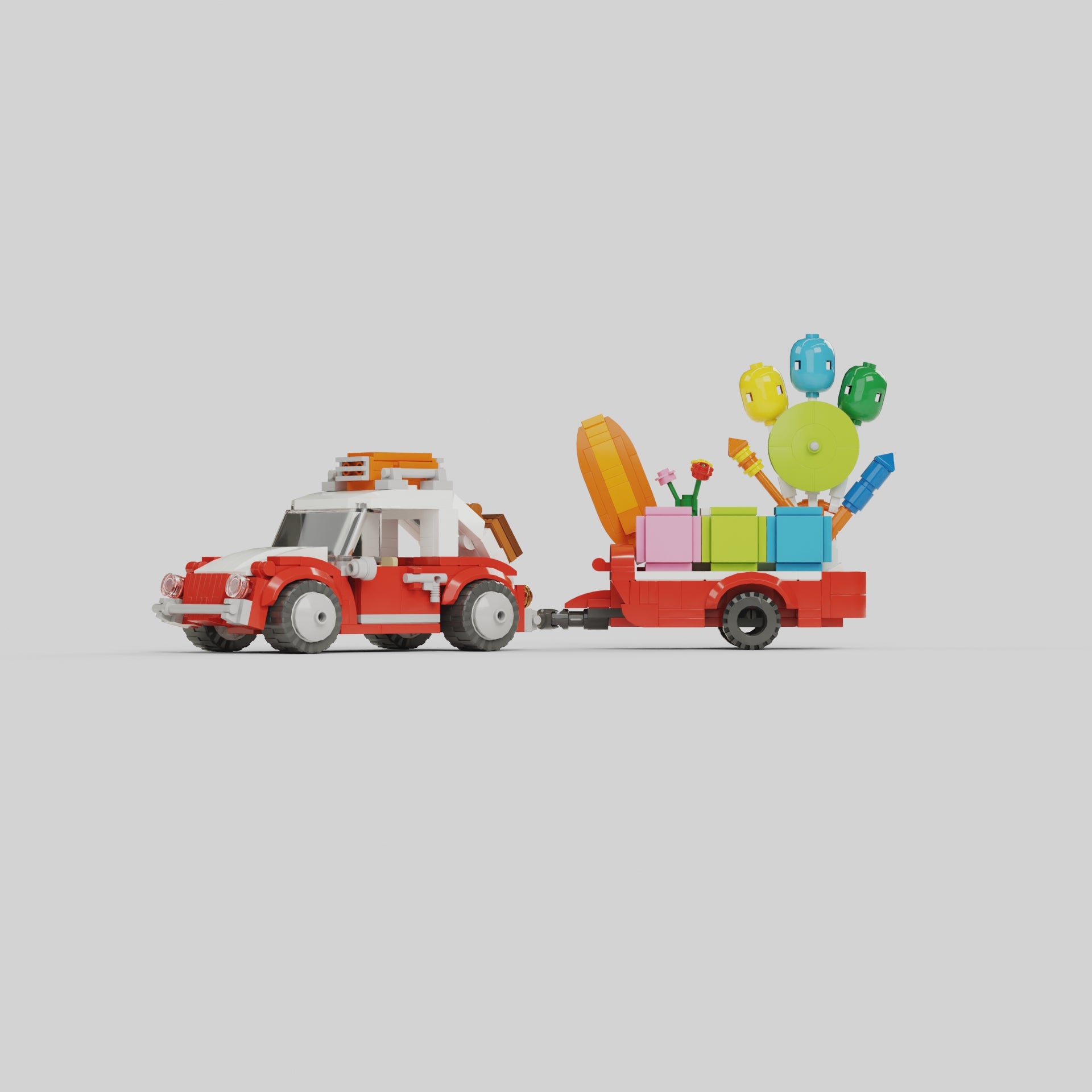 • Travel-Inspired Theme with a red car and trailer, perfect for any adventurer’s collection.