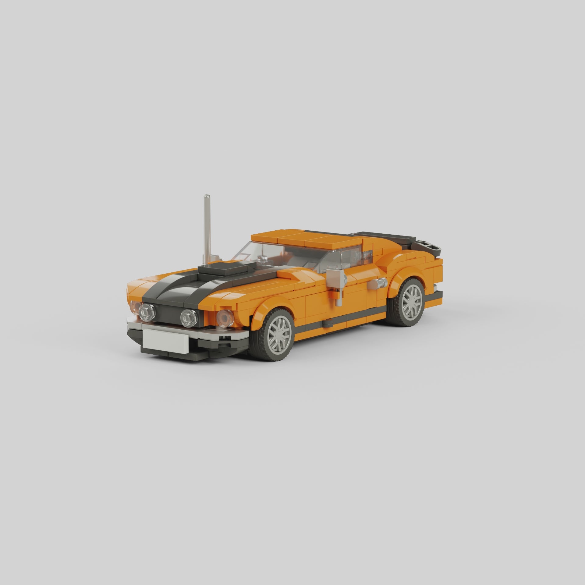 šŖ Bold Muscle Car Design: Wide body stance, hood scoop, chrome-like side pipes, and rear spoiler ā the signature details of a V8 street icon brought to life in brick form.