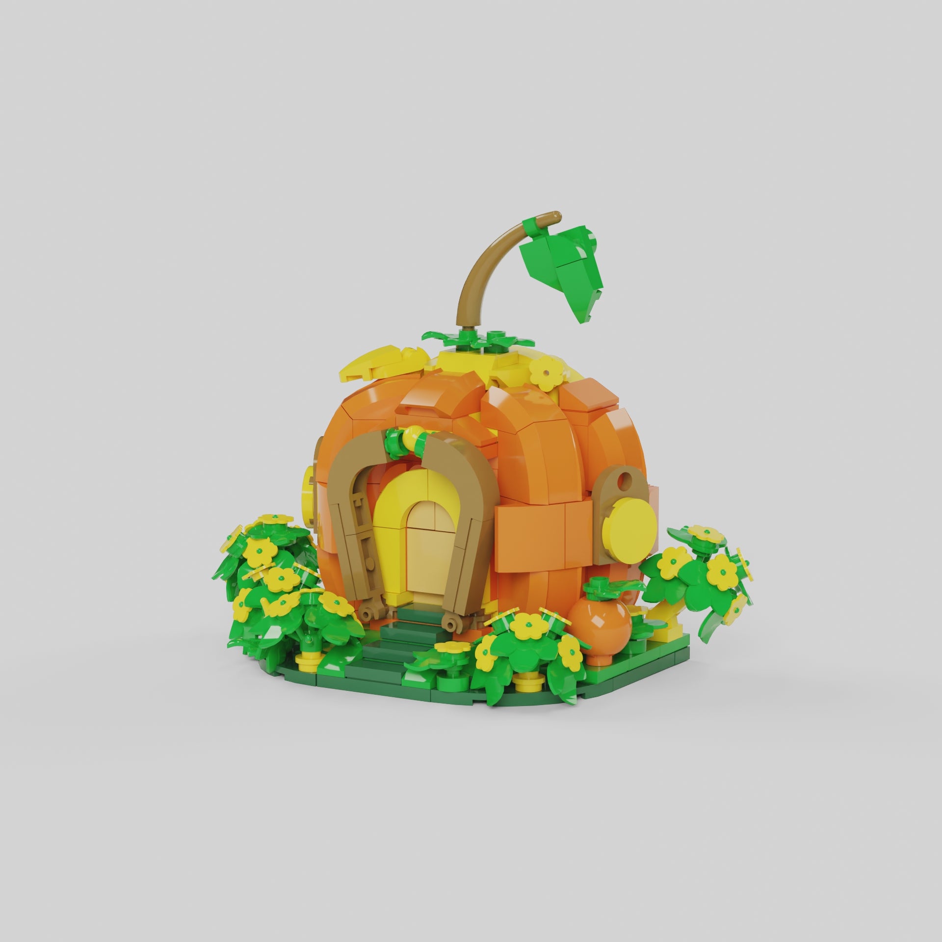 • Fun, easy-to-build design with vibrant pumpkin-colored walls and detailed flowers